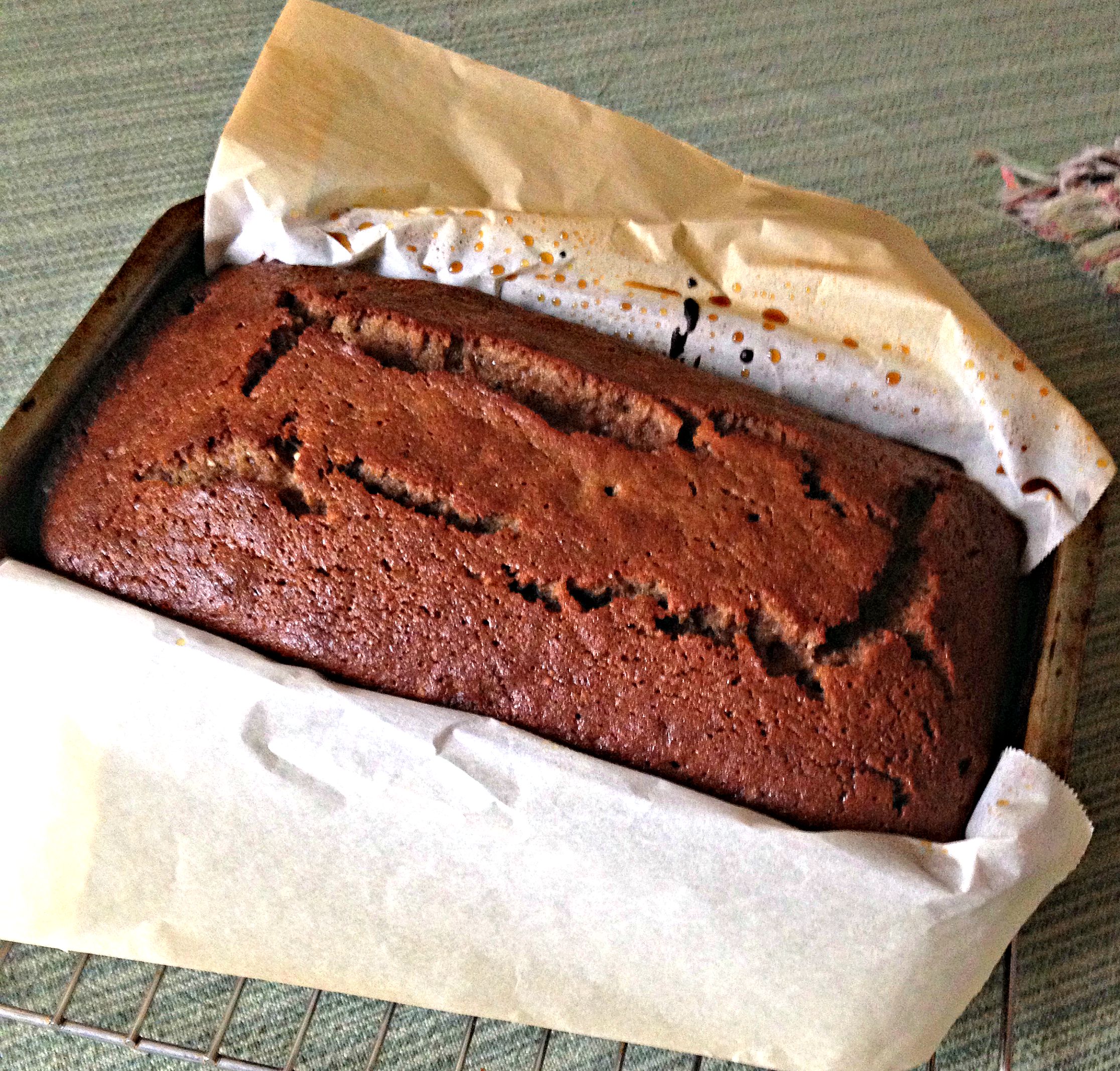 - Pour the batter into a greased loaf pan. Bake for 50 minutes to 1 hour or until a toothpick inserted in the centre comes out clean.