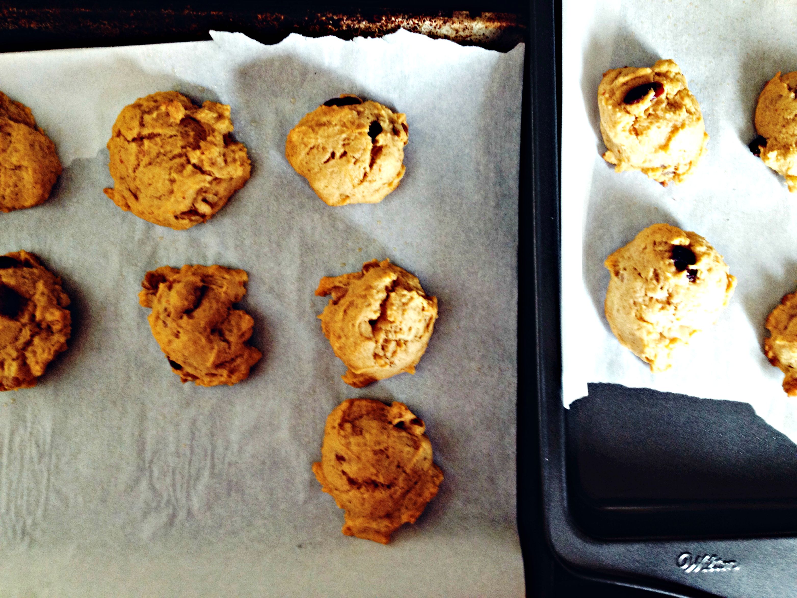 - Drop generous tablespoons of the dough onto the prepared baking sheets, about 1/2 inch apart.